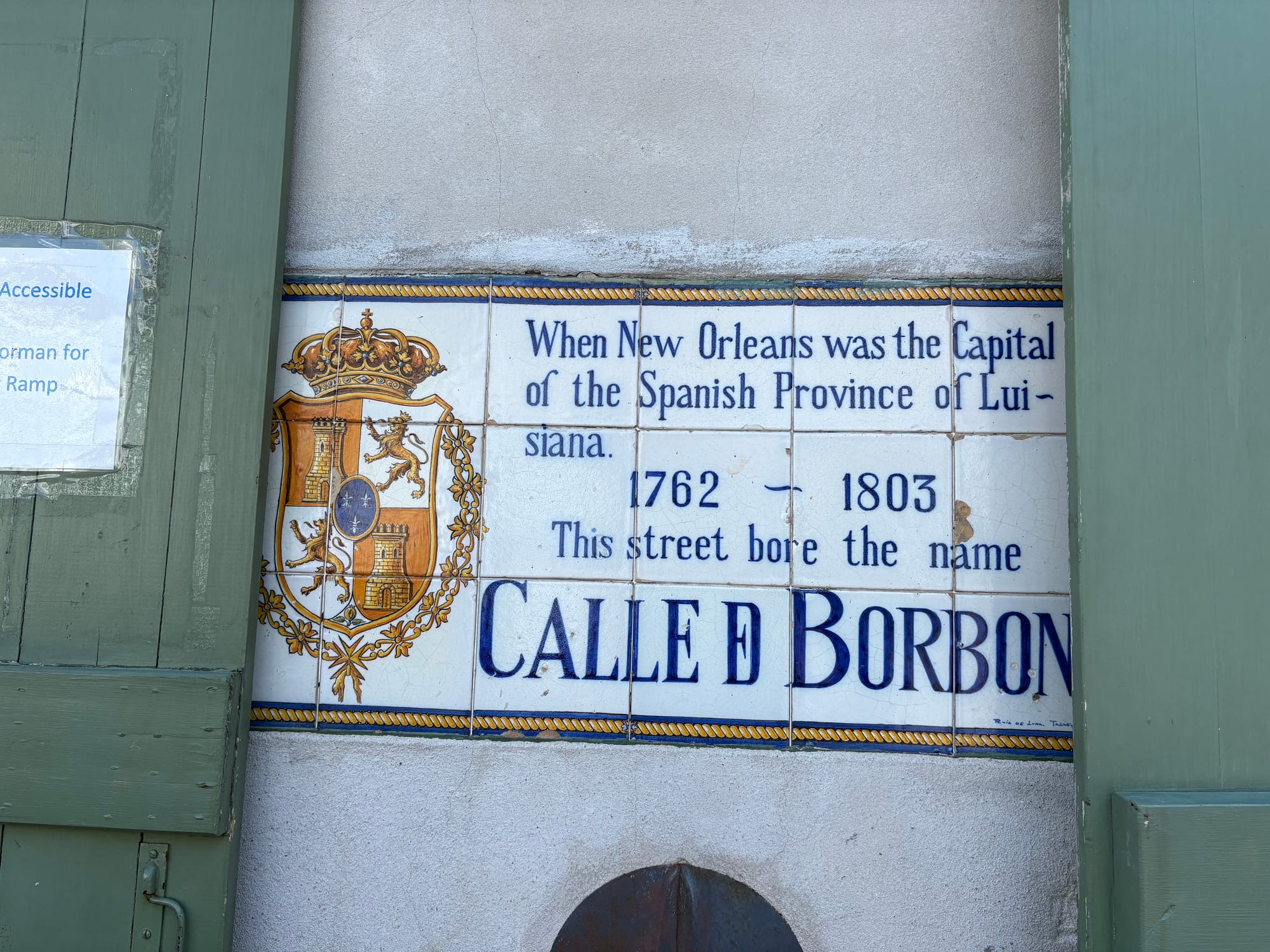 Strolling on, we came at last to the famous (or infamous) Bourbon Steet. No longer in our 20's, Kristen and I opted to make our first jaunt down the aptly-named place in broad daylight. Still quite busy even then, there was plenty to see and do, though we were more interested in the historical signage and landmarks we passed as we went on. Speaking of, one of my favorites has to be the tiled street markers that describe the naming conventions and history of each street when it was under Spanish rule.
