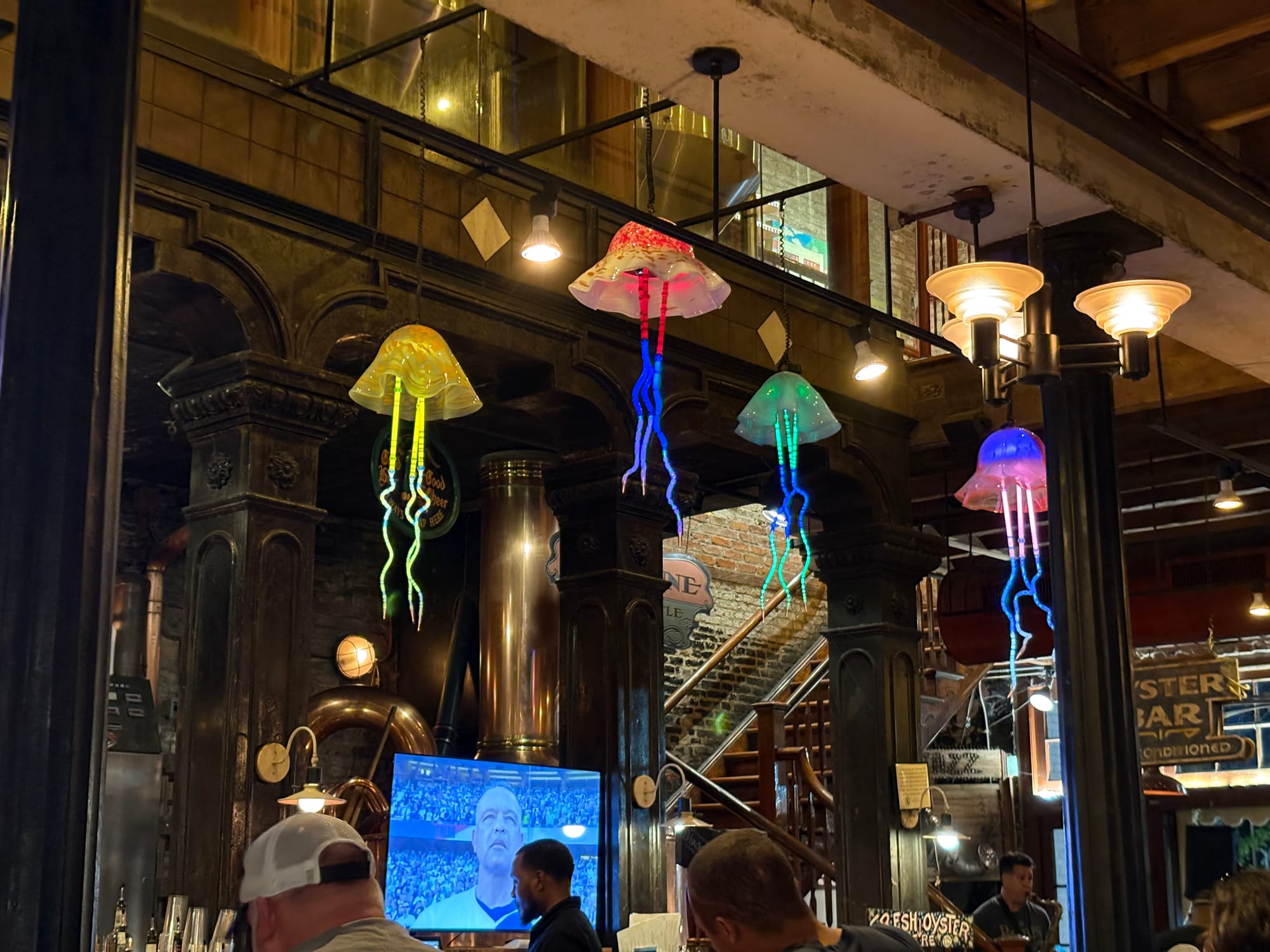 The food was nice, and the craft beer was excellent (I recommend the Red Stallion), but the big draw for me was the live Jazz music up front and the colorful art decor arranged around the brewpub itself. A number of local artists supply the stylized paintings, all of which are available to purchase. Not for sale (thankfully!) is the Jellyfish installation over the bar, lending the place a bit of nautical whimsy.